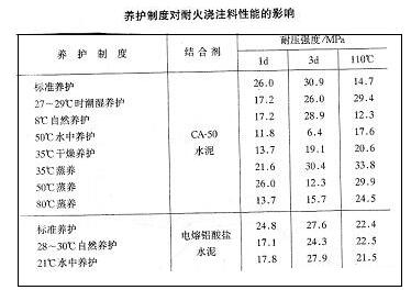 耐火澆注料的養(yǎng)護制度分為標準養(yǎng)護、自然養(yǎng)護、潮濕養(yǎng)護、蒸汽養(yǎng)護、水中養(yǎng)護、和干燥養(yǎng)護等1曜佳な竊諼露齲?20±3)℃和濕度大于90%的條件下養(yǎng)護。鋁酸鹽水泥耐火澆注料成型初凝后,置于何種養(yǎng)護制度條件下養(yǎng)護,十分重要,(詳見下表)